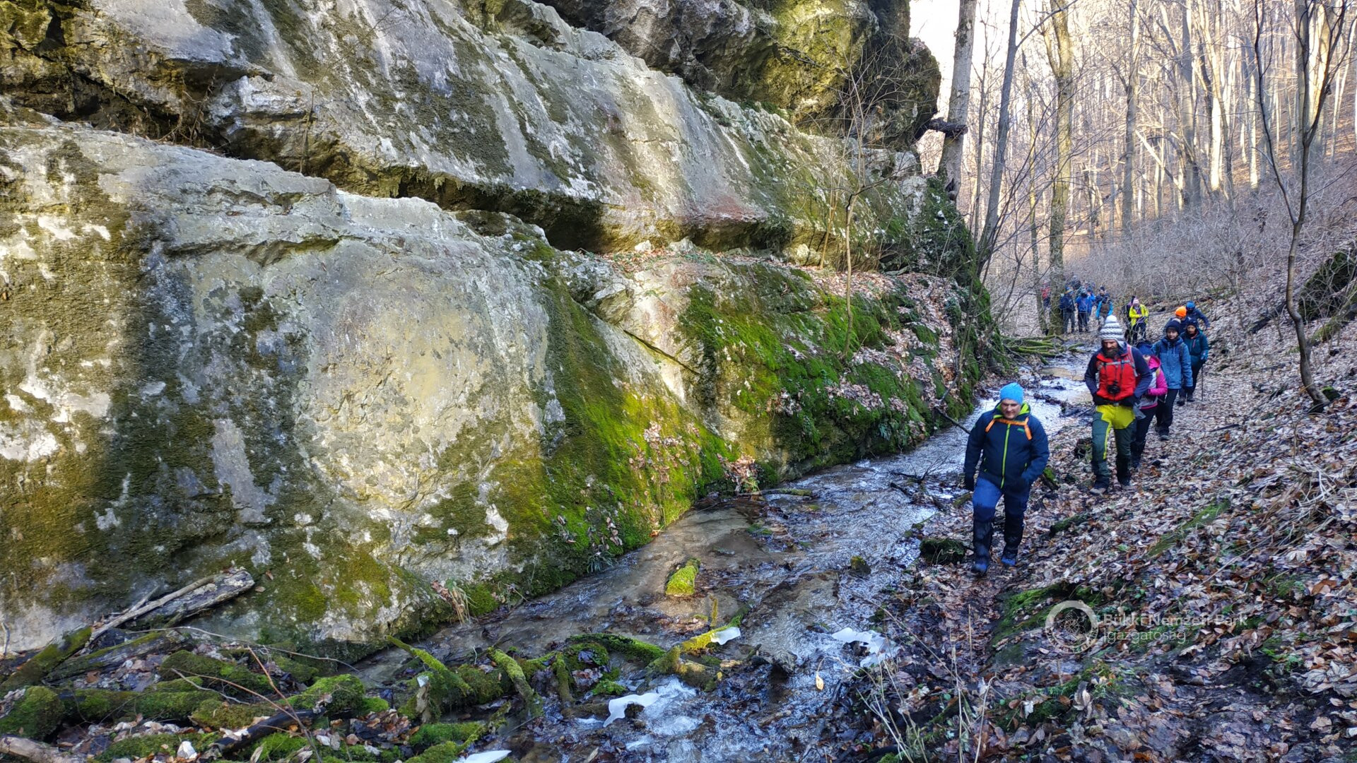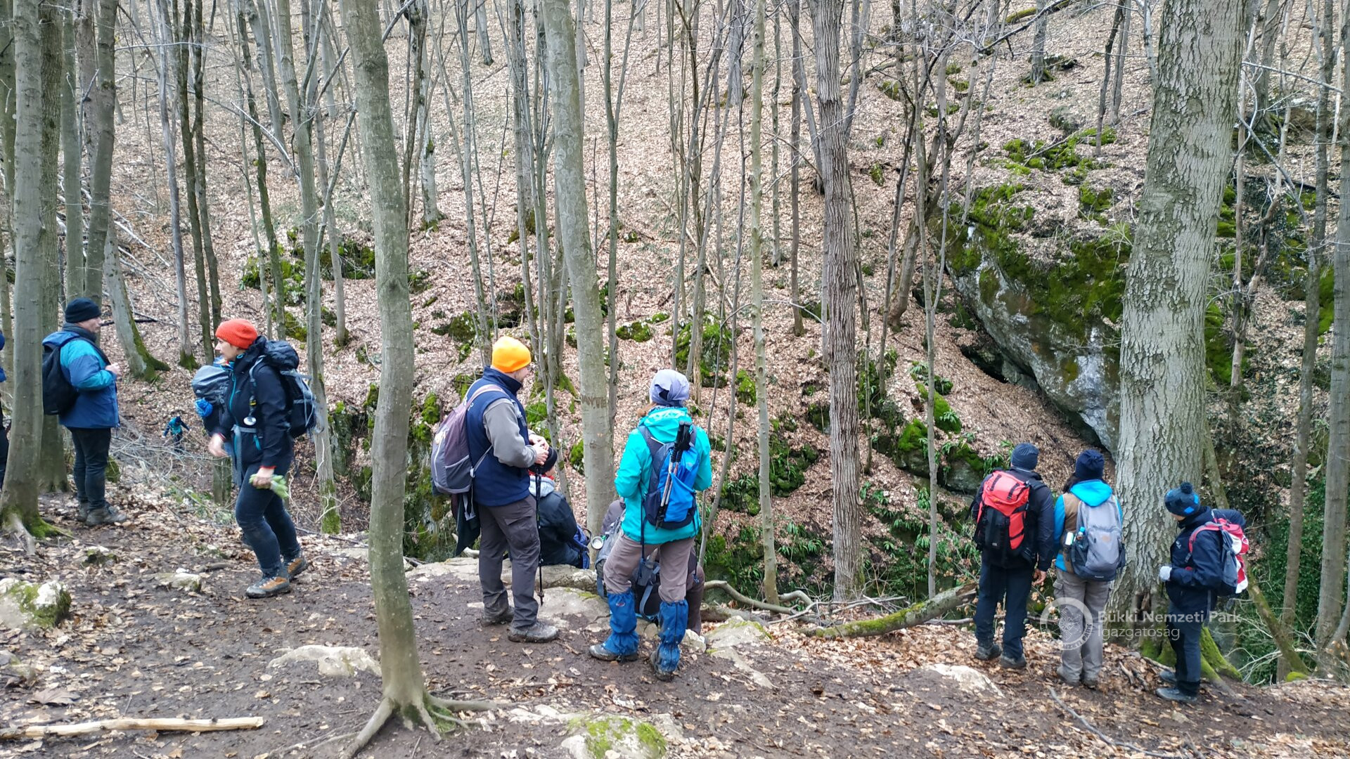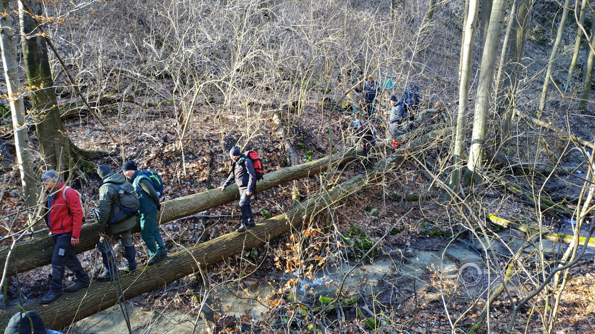 Az idei túrán Mályinkából indulva egy sokak számára ismeretlen területet jártunk be a Kis-fennsíkon, hogy a decemberben megnyitott miskolci Szeleta Parkba érkezzünk meg estére. A napsütéses reggelen a fokozottan védett Csondró-völgy alján csordogáló patak nedves körülményeket teremtett számunkra, számtalan kis vízeséssel és kidőlt fák alkotta természetes akadálypályával. Remek hangulatban kapasztodtunk fel az Odvas-kőre, felkerestük a Tardona-patak természetes állapotban megmaradt vízfőjét és a bővizű Mária-forrást, majd a szentléleki turistaháznál frissítettük fel magunkat meleg italokkal és némi harapnivalóval.