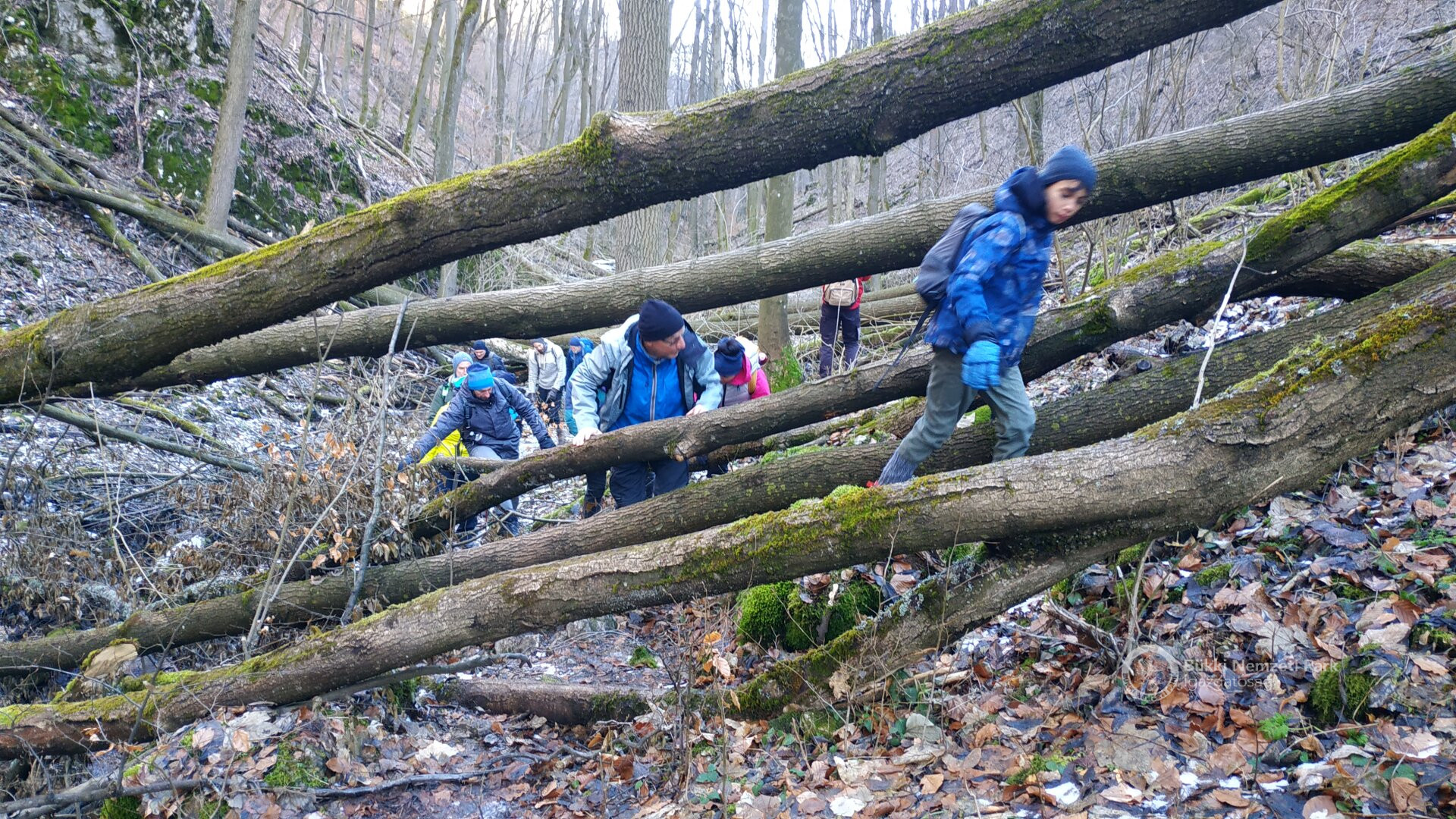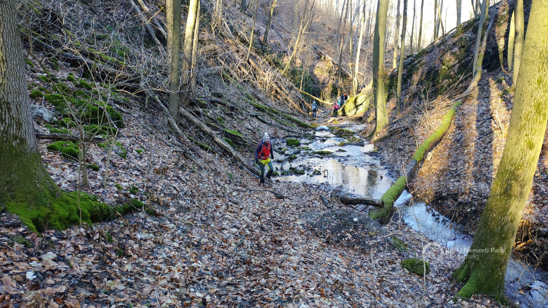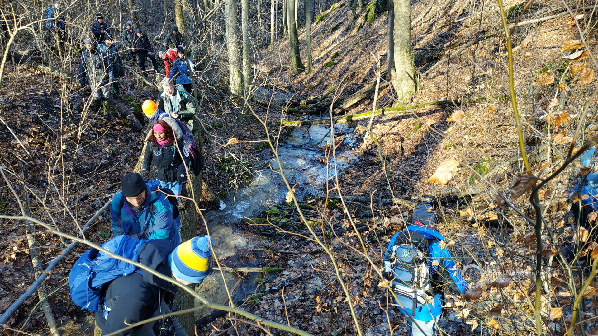 Az idei túrán Mályinkából indulva egy sokak számára ismeretlen területet jártunk be a Kis-fennsíkon, hogy a decemberben megnyitott miskolci Szeleta Parkba érkezzünk meg estére. A napsütéses reggelen a fokozottan védett Csondró-völgy alján csordogáló patak nedves körülményeket teremtett számunkra, számtalan kis vízeséssel és kidőlt fák alkotta természetes akadálypályával. Remek hangulatban kapasztodtunk fel az Odvas-kőre, felkerestük a Tardona-patak természetes állapotban megmaradt vízfőjét és a bővizű Mária-forrást, majd a szentléleki turistaháznál frissítettük fel magunkat meleg italokkal és némi harapnivalóval.
