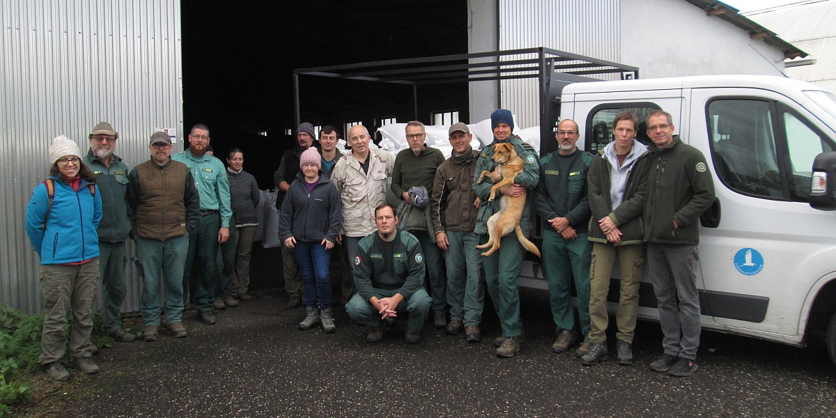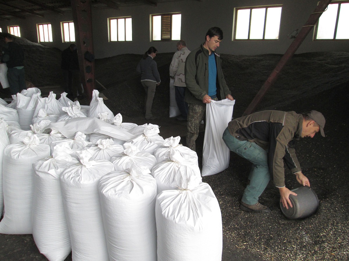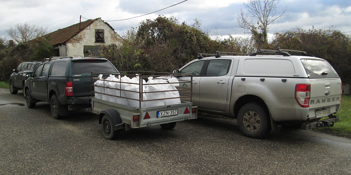 Reggel Borbáth Péter vezetésével természetvédelmi őrökből és irodai kollégákból álló lelkes csapat gyülekezett a Kerecsend melletti terményszárítónál, majd látott neki a több tonnányi napraforgónak. Az elmúlt években már jól begyakorolt koreográfia szerint vödrökkel szedték fel a hegynyi magot, gyorsan teltek a zsákok, alig győzték azokat kötözni, rakodni. A szorgos kezeknek köszönhetően így még délelőtt neki is indulhattak a szállítmányok három megye számos települése irányába. Azóta a zsákok már bizonyára célba értek, és mindenhol szétosztásra kerültek – itt telelő madárkáink és kedvelőik örömére.
