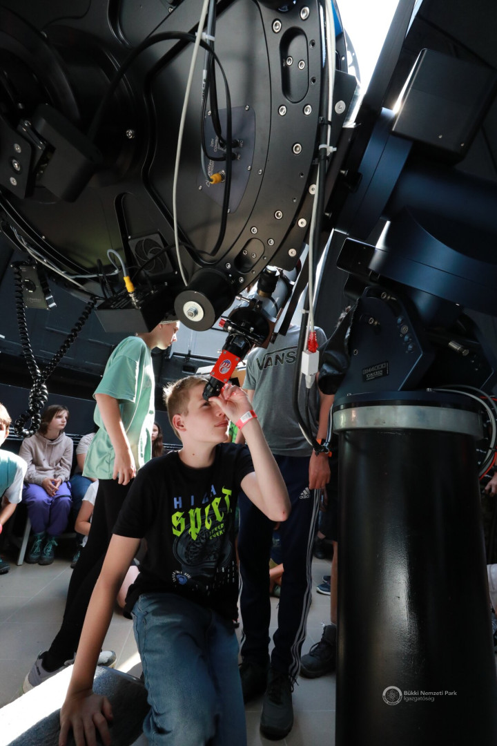 Másnap Varga-Verebélyi Erika csillagász foglalkozásán méretarányos naprendszer-modellt igyekeztünk alkotni, majd csapatverseny kezdődött, melynek témája az egyes választott égitestek kutatását célzó küldetés megtervezése volt. A felkészülés és az előadás során a gyerekek alaposan megismerték a Naprendszer bolygóit és az űrkutatás nehézségeit. Délután a Bükki Csillagda nappali programja keretében megtekintettük a kiállítást, a kupolában lévő távcsőparkot és a planetárium több filmjét, sokan VR eszközök segítségével kipróbálták az űrsétát és a holdraszállást is. A Bolygó-túra tanösvény bejárását követő éjszakai program tökéletes időjárási körülmények között zajlott. Szabad szemmel láttunk csillaghullást, a Tejutat és számos csillagképet, távcsövekkel pedig a Szaturnuszt, a Neptunuszt, planetáris ködöket, gömbhalmazokat, galaxisokat tudtunk megfigyelni.