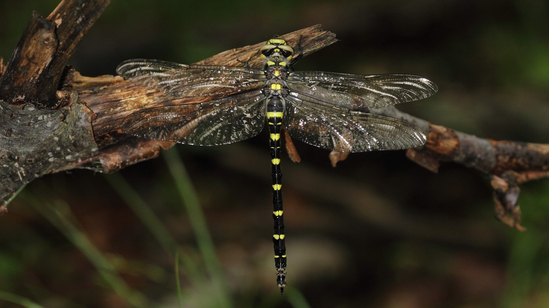 A sötét hegyiszitakötő az egyik legnagyobb termetű szitakötő fajunk, melynek testhossza a 8 centimétert is meghaladhatja, szárnyfesztávolsága akár 10 centiméter is lehet. Testét feltűnő, fekete alapon sárga mintázat díszíti, amely a potrohszelvényeken a hát felé erőteljesen szélesedik. Zöld szemei hatalmasak, ami segíti a gyors repülés közbeni tájékozódást és a zsákmány pontos követését.