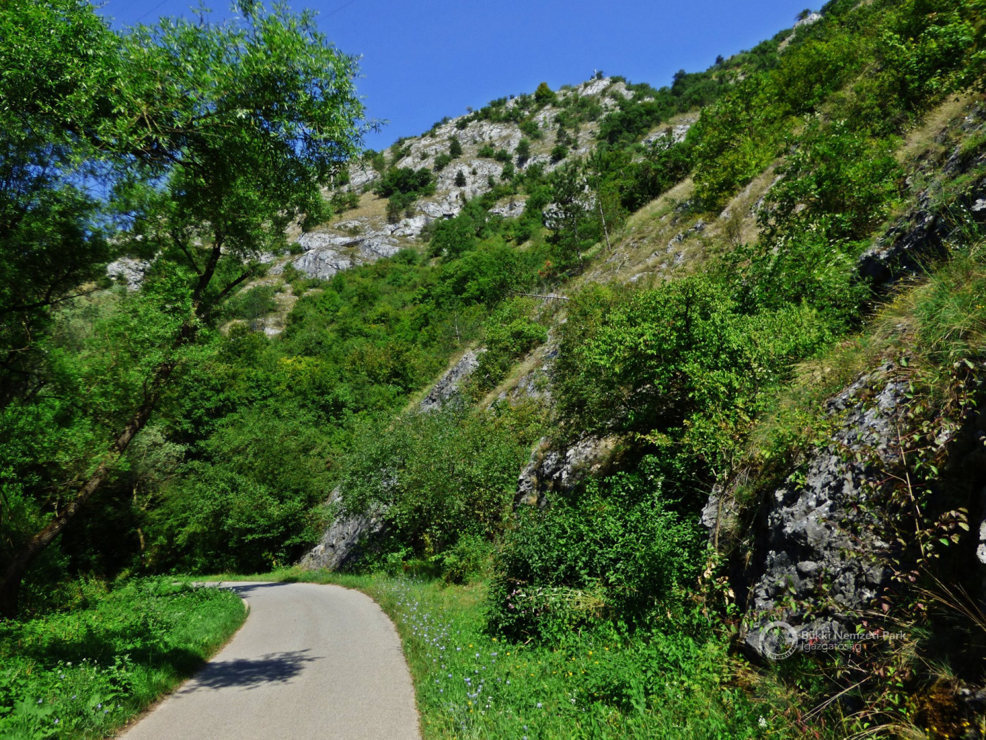 A kék jelzésre visszatérve Upponyig ereszkedünk, ahol a kéktúrázók bélyegezhetnek, illetve néhány szálláslehetőség is akad. Ha valaki nem tud betelni a víztározóra nyíló panorámával, a faluból meredeken vezető kék háromszög jelzésen a szoros másik oldalán emelkedő Eszkála/Vízköz-tetőre kapaszkodhat fel. Uppony minden oldalról hegyek közé zárt medencében fekvő hangulatos, csendes utcáit a szoroson átvezető műutat követve hagyjuk el. Innen alulról is megcsodálhatjuk a hazai viszonylatban rendkívül látványos kanyonszerű szurdokot. A szurdok növényzete a különböző irányban kitett oldalak és a meredek lejtés miatt nagyon változatos. Míg a Kalica-tető gerince inkább sziklagyepes, melegkedvelő fajok által borított, a szemben lévő, 120 méter magas, helyenként függőleges Sima-kő oldalában akár még jégkori maradványfajokat is találhatunk. A szurdok kialakulása a ma békésen, csendben csordogáló Csernely-pataknak volt köszönhető, mely a hegység gyors kiemelkedése közben fűrészelte egyre mélyebbre a völgyet, egy áttörést kialakítva. Ehhez hasonló táj a határainkon belül már nem igazán található. A szurdok oldalában kisebb barlangok is kialakultak, melyek közül több ősrégészeti és őslénytani jelentőséggel bír, azonban ezek fokozottan védett barlangok és megközelíteni is rendkívül nehéz őket.