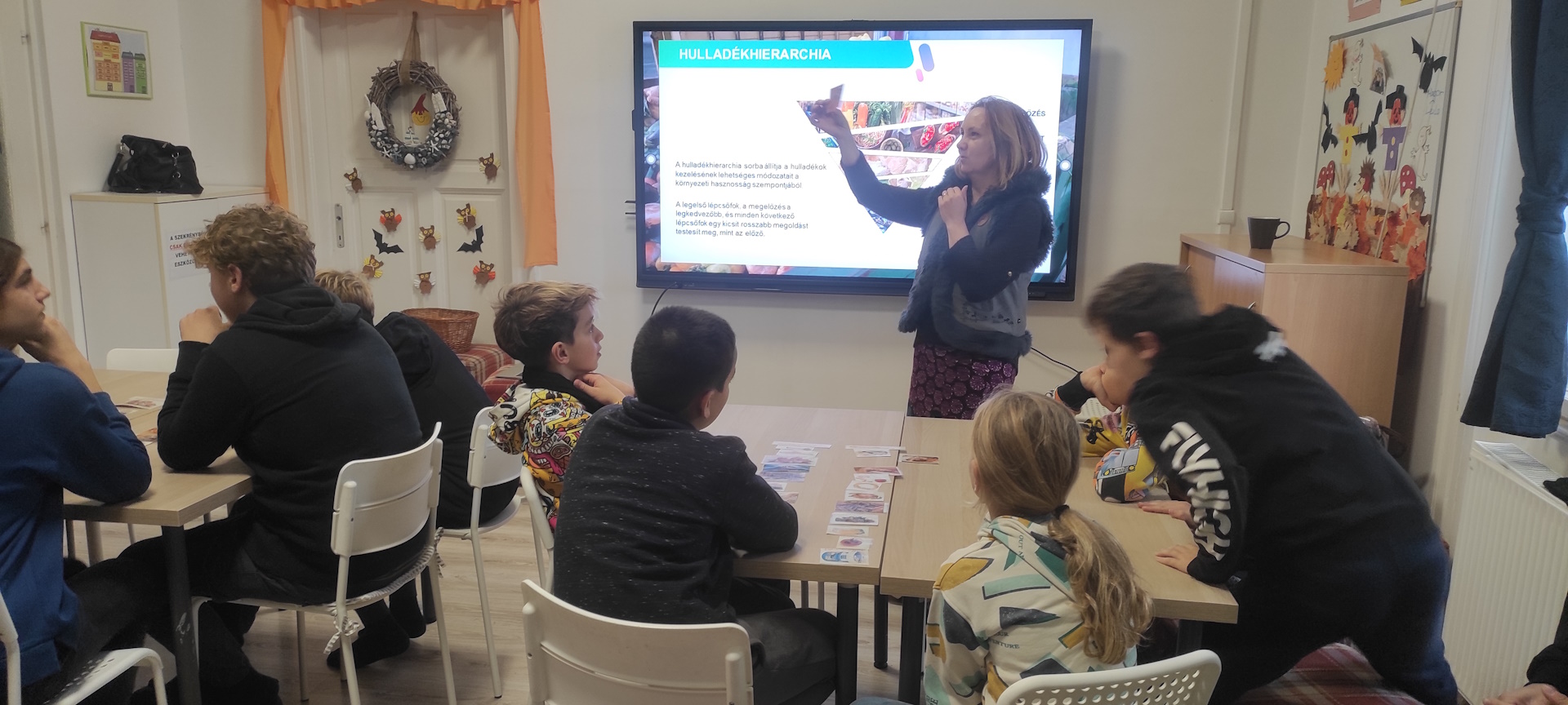 A gyerekek aktívan, lelkesen vettek részt a rendhagyó tanórákon. A csoportoknak a megelőzésre és az újrahasznosításra is kellett megoldásokat találni az óra során.