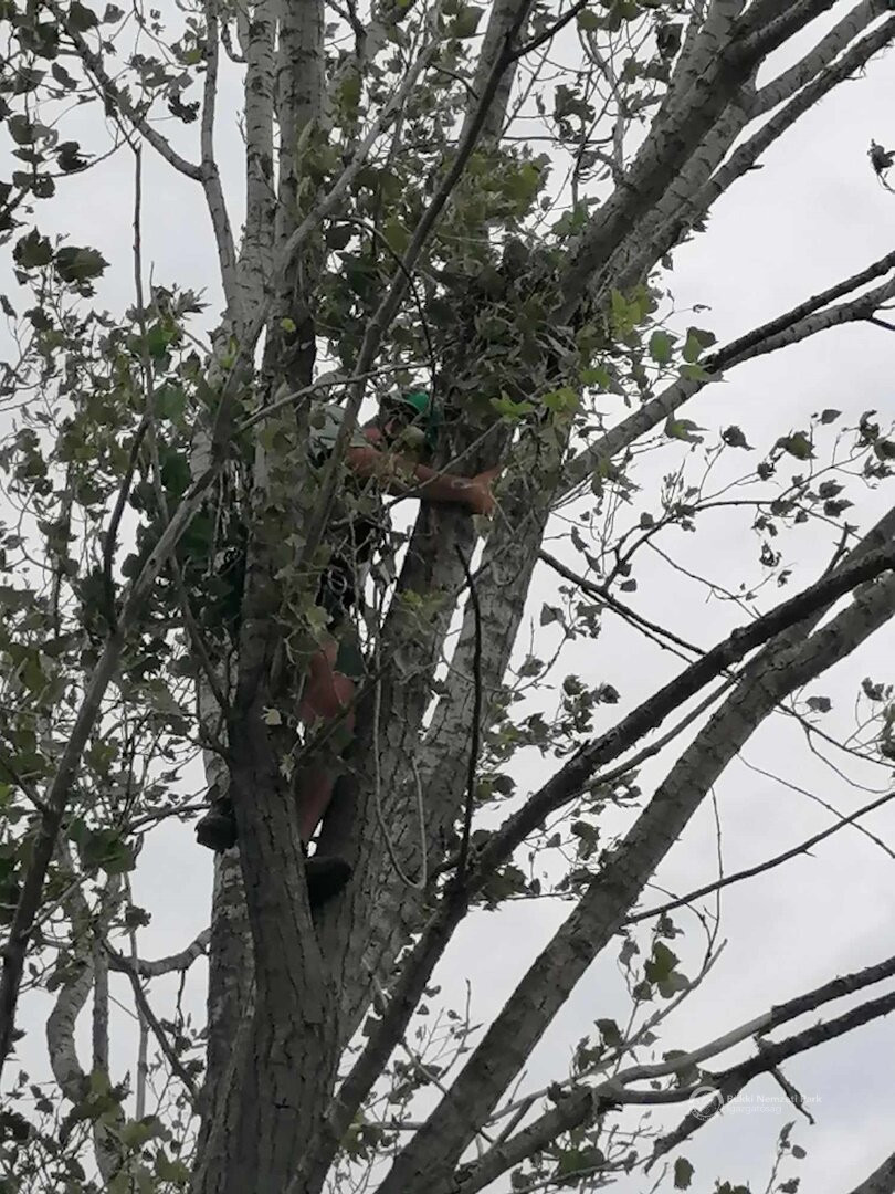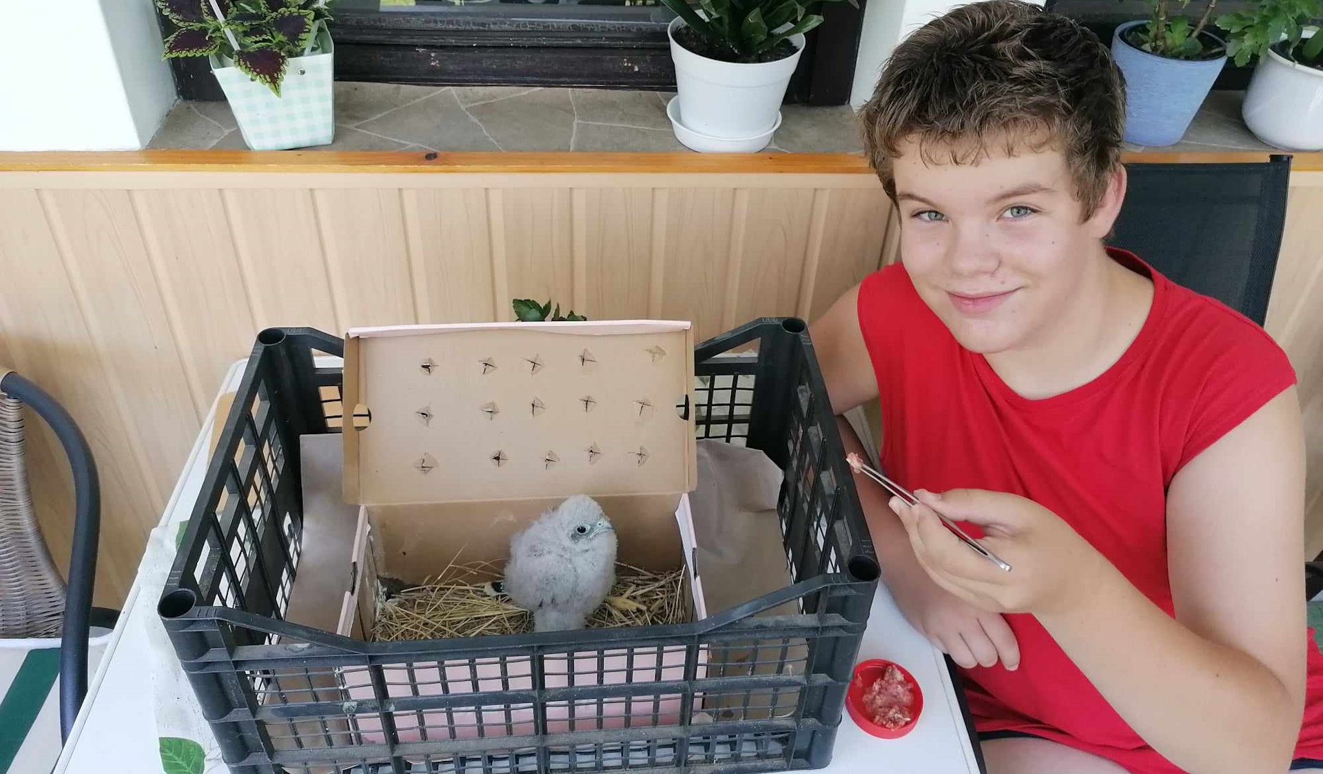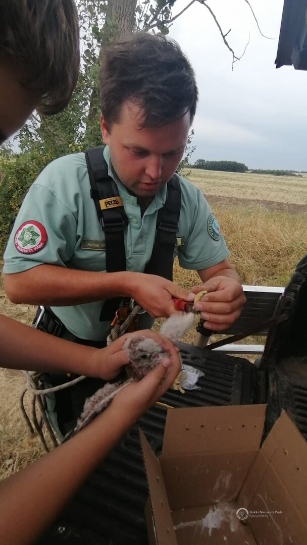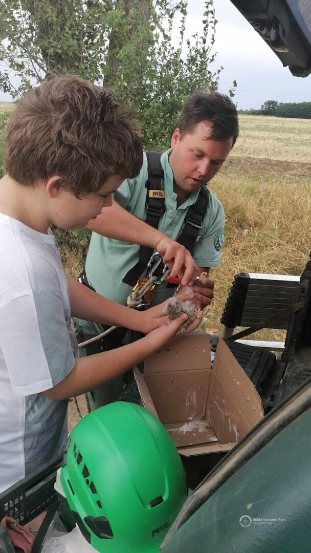 Nagy örömünkre szolgált, hogy a saját fészekaljunkban találunk önkéntes segítséget: a mentés során Csáki Imre Hunor amiben tudott, a helyszínen segített minket. Miután Molnár Márton természetvédelmi őr (Mátrai Csoport) megtalálta a fészket és megbizonyosodott, hogy a fészekben vannak még fiókák, a felnőtt (adult) madarak etetnek és a fa, amin a fészek elhelyezkedik, az biztonságosan mászható, kis önkénteseinkkel már vittük is a fiókát.
