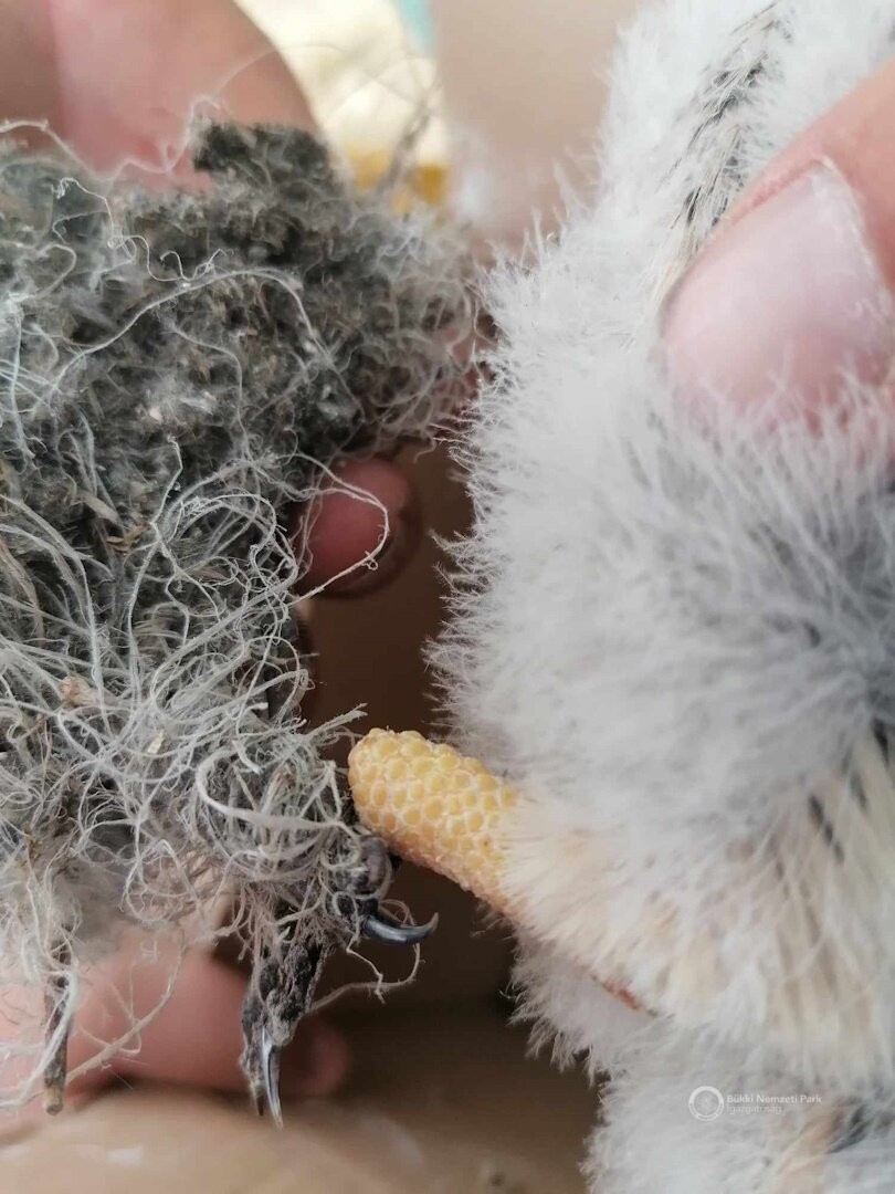 Egyértelmű volt, hogy a szabad életre már nem lesz képes fél lábbal, így a fészekből való kivétel mellett döntöttünk. Szakszerű állatorvosi kezelés (lábfej amputálása) után ez a fióka bemutató madár lesz, sajnos a természetbe már nem térhet vissza. A sikeres fiókamentés tehát egy újabb fiókamentésbe csapott át.