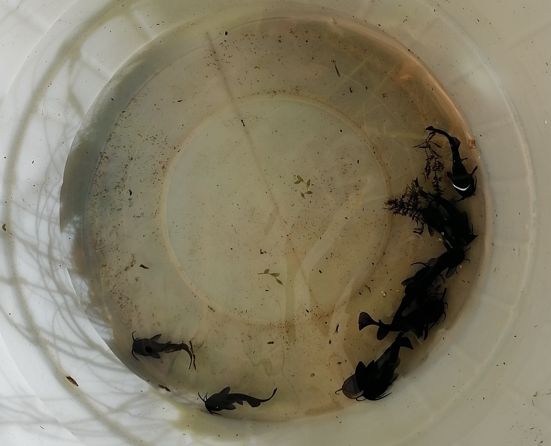 Elektromos halászgéppel lehalászott idei törpeharcsák. Fotó: Zsupos Vivien
