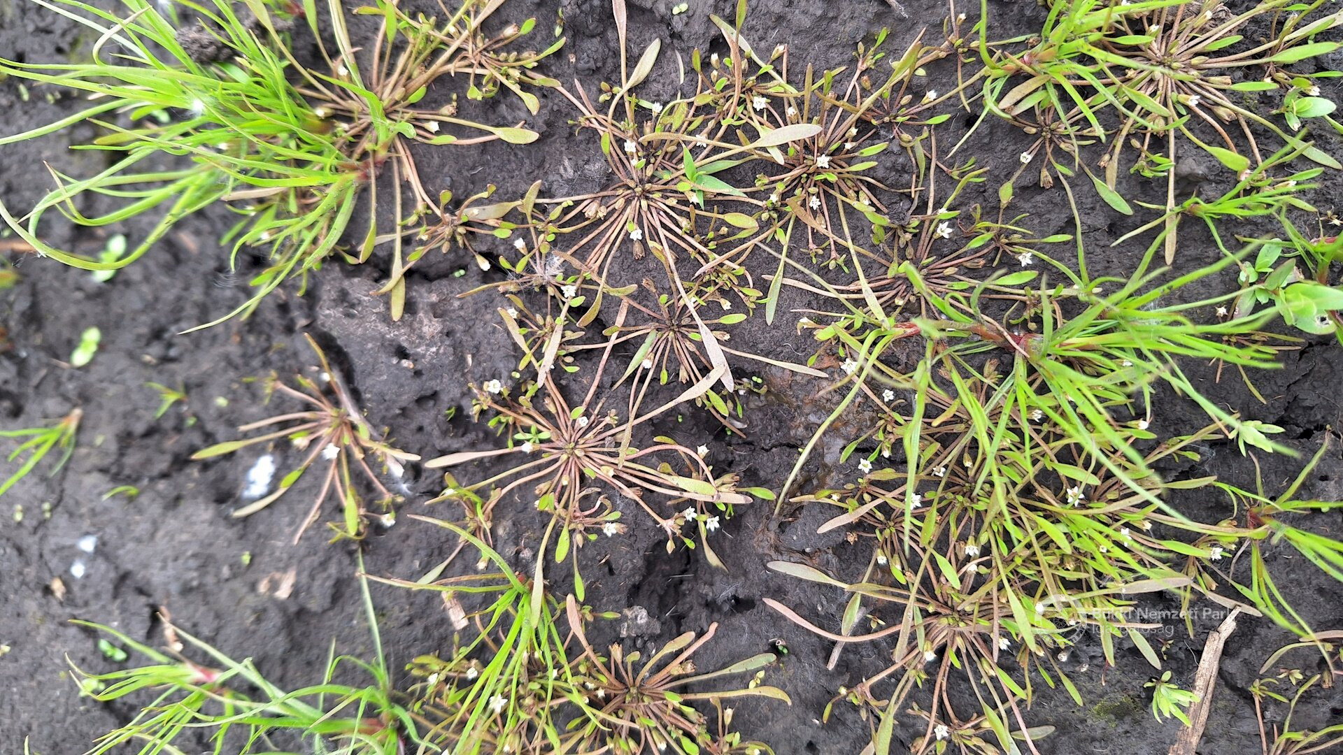 Magyar látonya parányi (Elatine hungarica) telepe friss iszapfelszínen