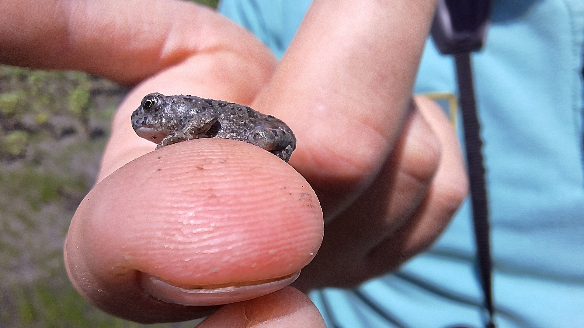 Frissen átalakult zöld varangy (Bufo viridis) példány