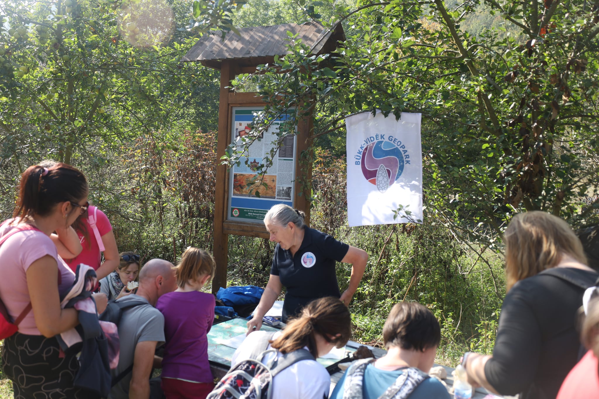 Éva néni a Less Nándor Emléktúrán a Bükk-vidék Geopark állomásán Fotó: Megyeri Balázs