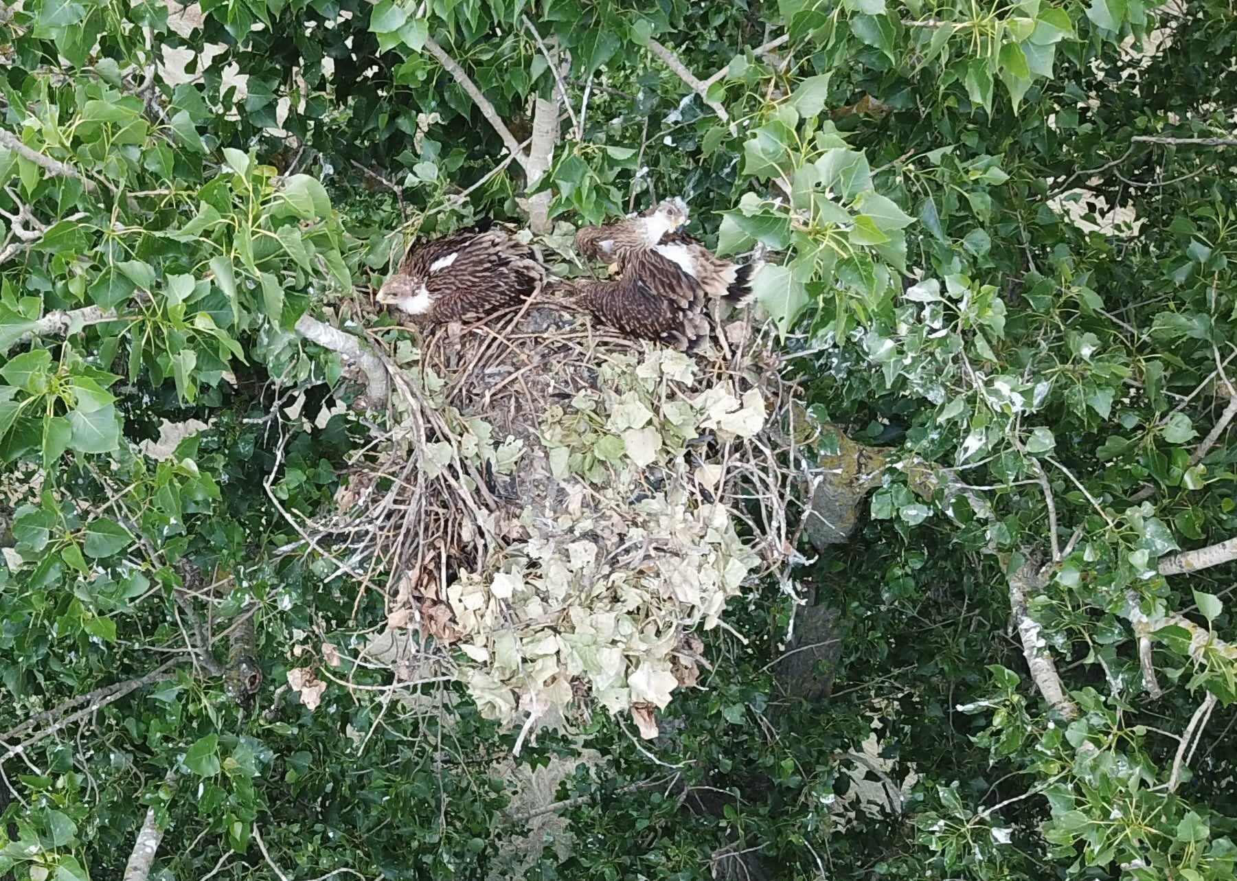 A hétvégi viharok a Jásszágban is komoly károkat okoztak urbánus környezetben és vidéken egyaránt. A térségben jelentős a természeti érték pusztulása, jelen esetben is zajlanak mentési és ápolási munkák. Károk keletkeztek többek között parlagisas-fészkekben, vércsetelepeken. A nálunk életben maradt sasfiókát átadtuk a jászsági kollégák részére, ahol egyéb fészekleszakadásból származó fiókával együtt új családjához helyezték ki, egy épségben megmaradt fészekbe. Nagyon fontos, hogy kirepülésük előtt, ami várhatóan egy hónap múlva esedékes, stabilan be tudjanak illeszkedni új helyükre és a pótszülők meg tudják tanítani őket repülni, sikeresen zsákmányolni, hogy életük egyik legnehezebb első évére határozottan tudjanak felkészülni.