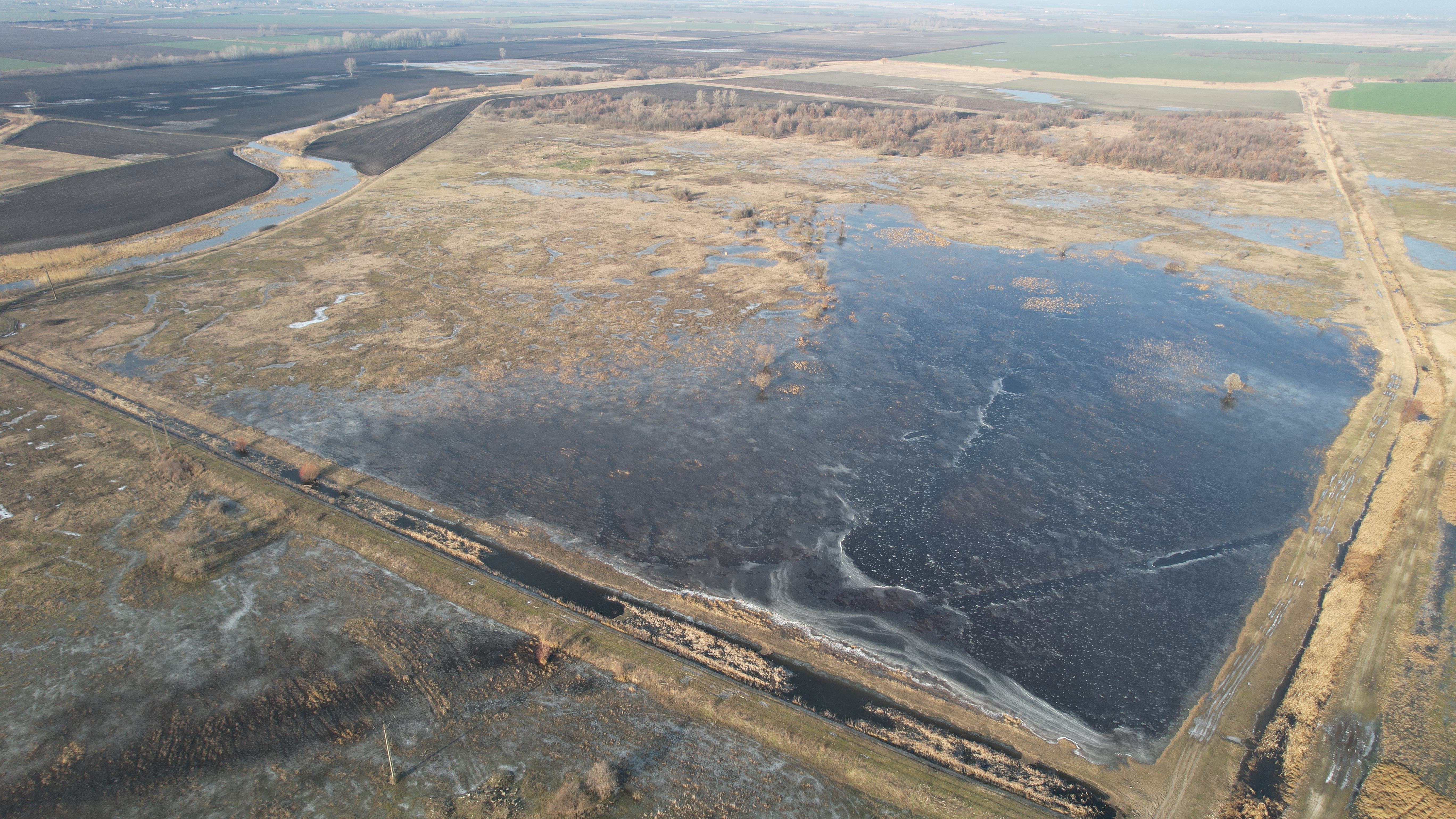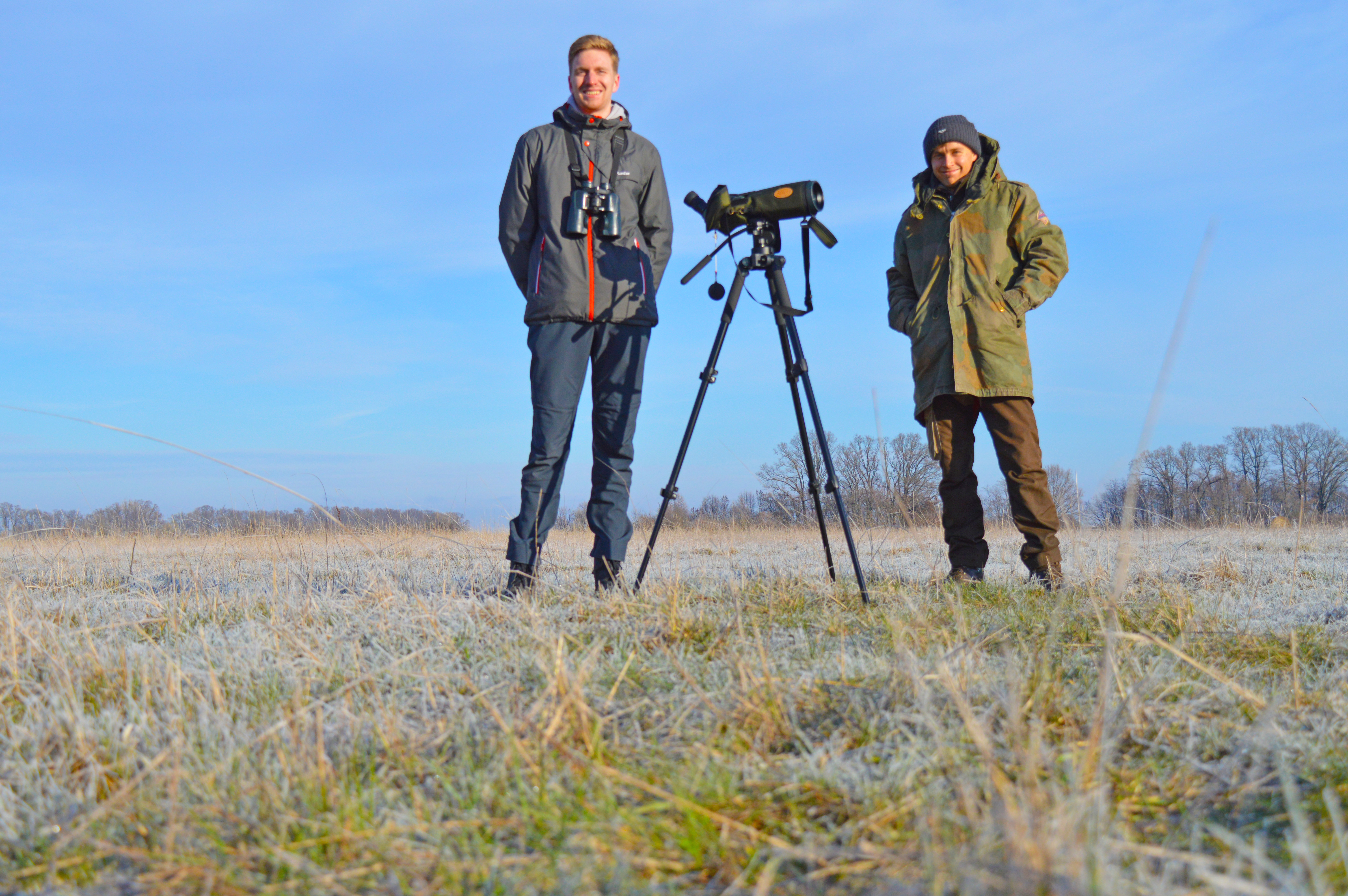 Az MME Ifjúsági Tagozatát képviselve a szombati napon csatlakoztunk Marci barátommal (Szőke Márton) a Bükki Nemzeti Park Igazgatóság Dél-Hevesi Tájegységéhez, ahonnan egy reggeli, gyors eligazítást követően mentünk is a kijelölt területünkre. Térkép, távcső, spektív, fényképezőgép összekészítve és már sétáltunk is az egyik meglehetősen ritkás, „téli arcát” mutató akácfasor mellett, ahol egy egerészölyv (Buteo buteo) gubbasztó példányára figyeltünk fel. Hideg idő jellemezte a felmérés előtti napokat, reggelre a hőmérséklet erősen a mínusz tartományba süllyedt. Látszatra az ölyv ennek nem örült annyira, ellenben mi annál inkább, mivel sárnak nyoma se volt. Az elmúlt időszakokban lehullott nagy mennyiségű csapadék olykor kisebb jégpályaként csillogott a gyepek és szántóföldek felszínén a tiszta, napfényes időben.
