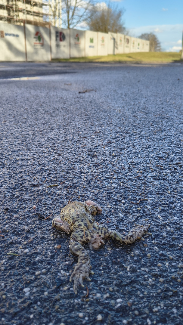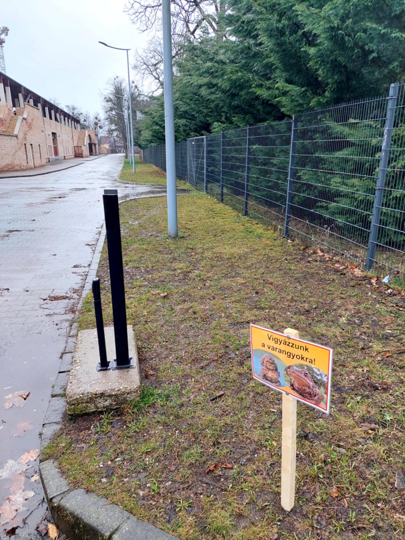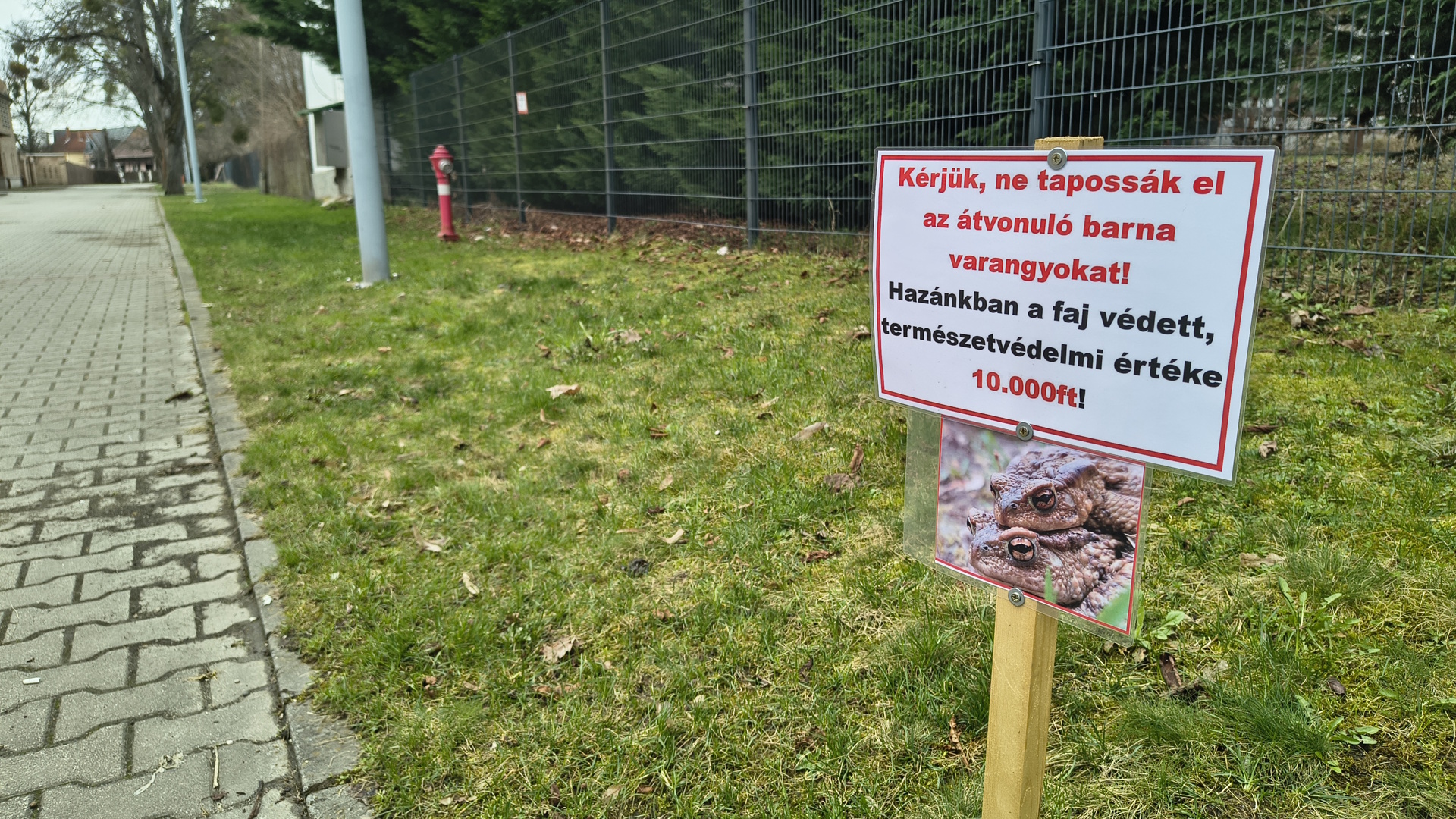 Bár a környéken nem nagy a gépjármű forgalom, mégis számos elütött békával találkoztunk az utcákon, amit a helyi önkéntesek figyelmeztető táblák kihelyezésével és vödrös békaszedéssel próbálnak kezelni.