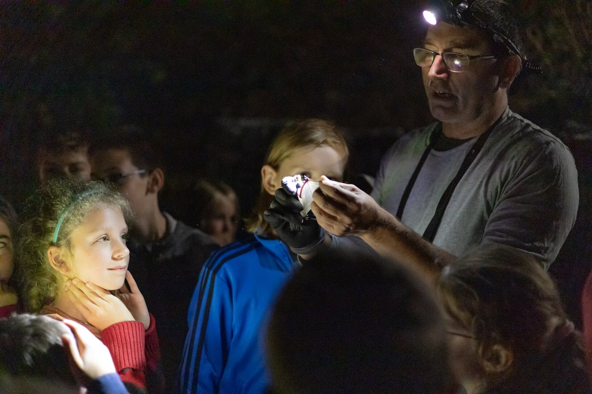Szerdán kisvonatra ültünk, és egészen a Stimecz-házig zakatolt velünk a a mozdony a felújított, nyitott vagonokkal. A végállomástól a tanösvényen bandukolva értünk el a nagy örömünkre még működő Vörös-kői karsztforráshoz. Útközben kétszer is elkapott minket a zivatar, de ez nem szegte kedvét a Túramanóknak, sőt, nagyobb lelkesedéssel fogtunk hozzá a kemencében sült pizza elkészítéséhez. Nem is maradt éhesen senki, így aztán jóllakottan vártuk alkonyatkor a denevérek érkezését. A tóparton felállított hálóba öt különböző faj is berepült, Gombkötő Péter zoológiai referens mindig érdekfeszítő előadásán a denevérek mellett a kérdések is repkedtek. Igen későre járt már, mikor kénytelenek voltunk takarodót fújni.