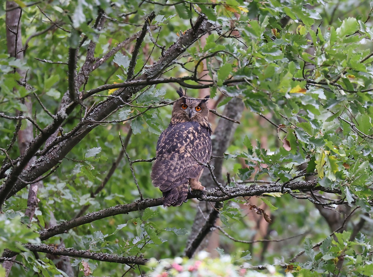 Miután a helyszínen a madarat Bodzás János természetvédelmi őr kollégánk meggyűrűzte, sor kerülhetett a szabadon engedésre. A fiatal uhu nem sokat teketóriázott, határozott ívben az őt jól rejtő lombok közé repült. Nem sokkal később már a fák sűrűjéből hallottuk az erdőlakó kisebb madarak riasztását, ami nyilvánvalóvá tette, hogy hol próbál éppen elrejtőzni ez a frissen elengedett csúcsragadozó. Az elkövetkező napokban, hetekben igyekszünk visszatalálni madarunkat, és reméljük, hogy hamar megtalálja helyét és párját a vadonban.