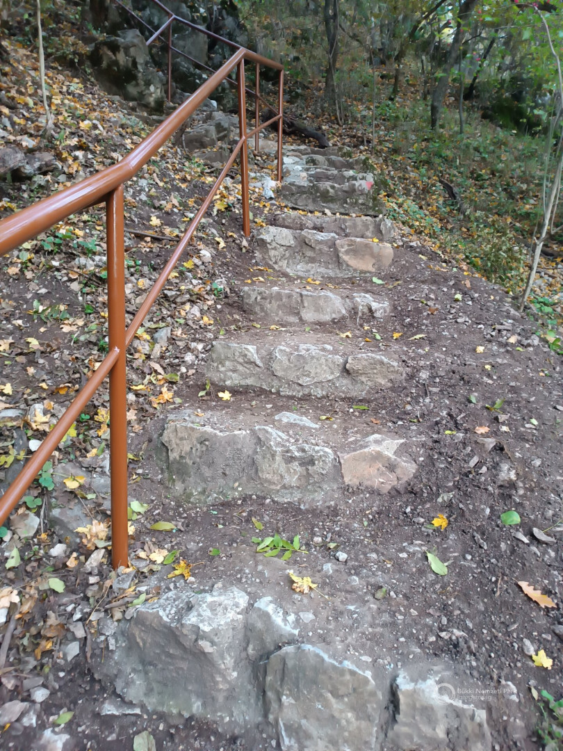 A kirándulók október 23-tól újra birtokba vehetik a népszerű, ám meredek ösvényt. A meglévő korlátok újabb szakaszokkal lettek kiegészítve, hogy minden meredek szakaszon kapaszkodót nyújtsanak, egyúttal kijelöljék a fel- és lejutás nyomvonalát azokon a helyeken is, ahol korábban több nyomot is tapostak. A régi lépcsőfokok megújultak, helyenként új lépések kerültek kialakításra a sziklában, így mostantól sokkal biztonságosabb és könnyebb is a barlangba való feljutás. Félúton egy kis pihenőhelyet is kialakítottunk, ahonnan a Hór-völgyre és a szemközti sziklafalra nyílik kilátás.