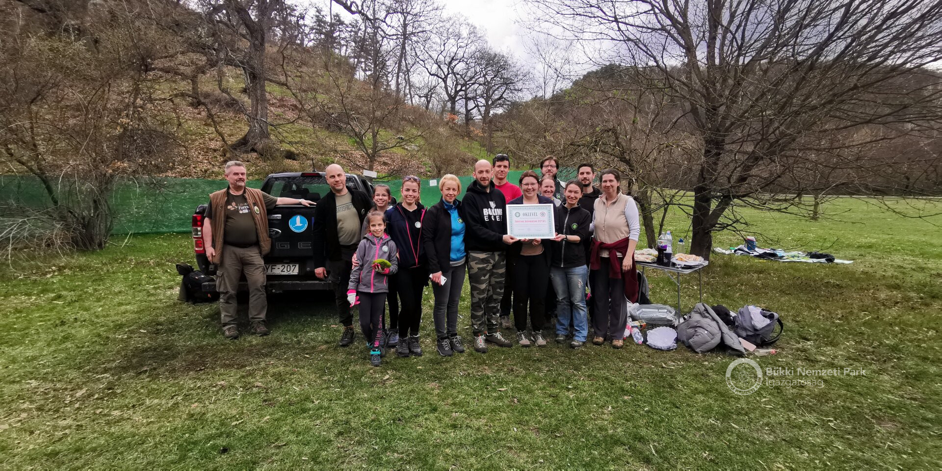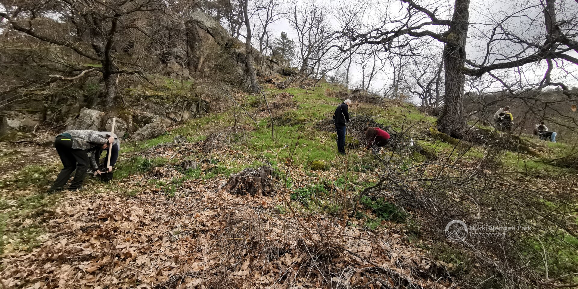 Miután mindenki kitűzte a BNPI-től kapott, az önkéntesek összetartozását is szimbolizáló jelvényt, az időjárási előrejelzés ellenére, gyönyörű, napsütéses időben látott neki a csapat a kemény munkának. Nagyobbrészt őshonos, molyhos tölgy csemetéket telepítettek kézi erővel, de elegyfaként mezei szilt és vadgyümölcs fajokat (vadkörtét, vadalmát és sajmeggyet) is ültettek. Nemcsak a felnőttek dolgoztak, hanem a velük érkező gyermekek is nagy odaadással segítették szüleiket a munkában. A fantasztikus hangulatban zajlott kezdeményezés során gyorsabban fogytak el az ültetésre váró csemeték, mint a rendelkezésre álló pogácsa és szendvics halmok. Az önkéntesek hihetetlen elszántsága és önzetlen munkája újra bizonyította, hogy mindenki tud, képes tenni valamit a természetért, miközben a szabadidőt is tartalmasan tölti el!