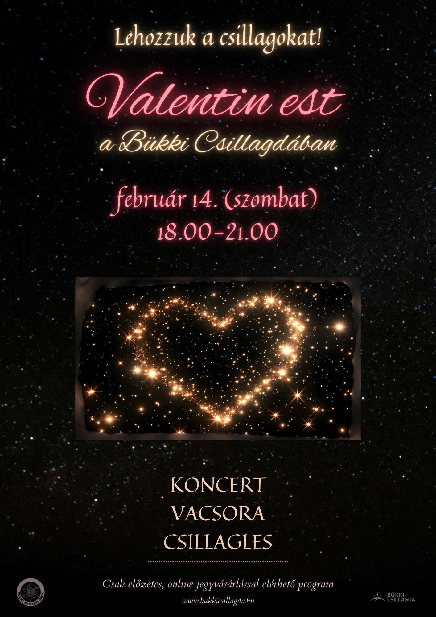 Valentin-nap alkalmából, február 14-én, szombaton rendhagyó csillaglessel készülünk a hozzánk érkezőknek.